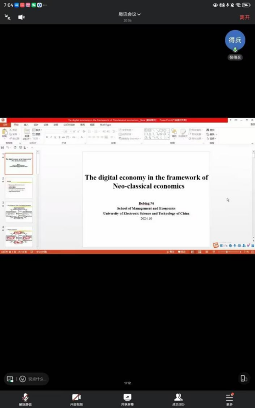 在数字化浪潮席卷全球的今天,数字经济已成为推动经济增长的新引擎。为了深化公司研究生对数字经济的理解,2024年10月18日(星期五)19:00,由伟德国际1946主办,伟德国际1946运营与供应链管理研究中心承办、伟德国际1946研究生会协办的“工商管理论坛”在腾讯会议线上举办。本次论坛邀请到电子科技大学经济与管理公司倪得兵教授,带来题为《新古典经济学框架下的数字经济》的专题讲座。讲座由伟德国际1946副经理胡北明教授主持,2023级、2024级学硕、博士共计90余位同学参加。