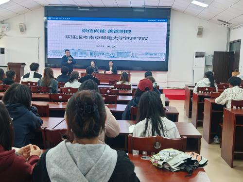 宣讲会上,周晓剑副经理重点介绍了南京邮电大学管理公司的招生专业和学科优势。朱琳娜博士则针对同学们关注的招生录取比例、奖学金覆盖面等问题进行详细解答。