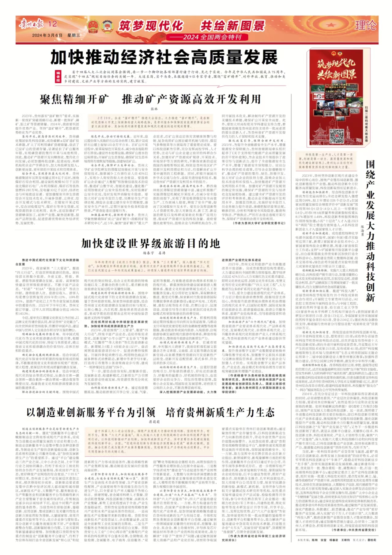 贵州日报两次邀请杨春宇教授针对我省两会关于“打造世界级旅游目的地”,就政府工作报告中提出的我省如何打造世界级旅游目的地的新要求、新观点、新举措,解读如何打造世界级旅游目的地理论文章。