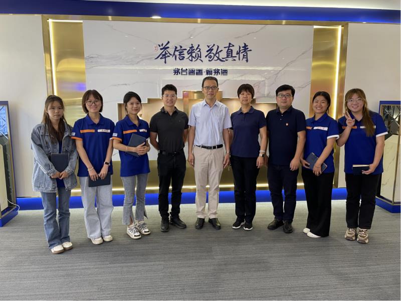 2023年7月28日,公司党委副书记陈劲松与市场营销教研室教师杨炳成,走访看望了在贵州赖茅酒业开展专业实习的员工。