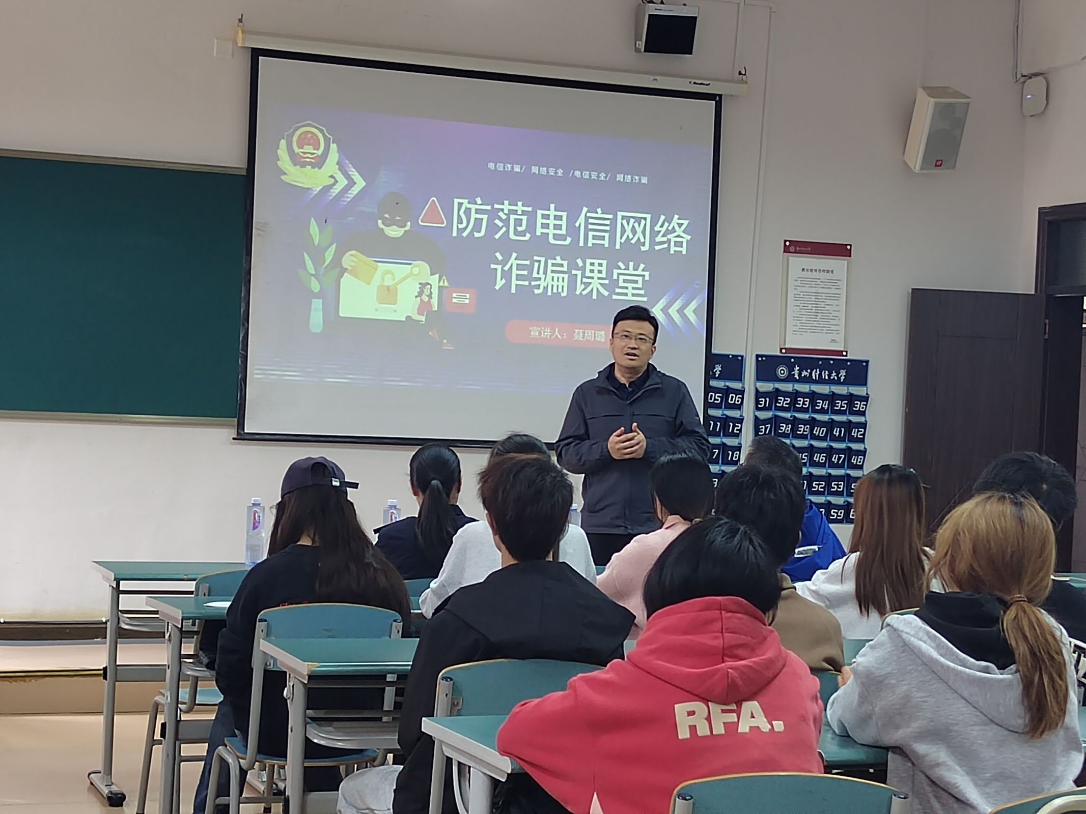 首先,何瑞强调了防范电信网络诈骗的重要性,并提醒同学们,在网上购物时,不要点击商家发来的退款链接,应直接登录官方购物平台联系客服处理退款事宜;不要相信任何要求先行垫付资金的兼职信息;不要随意透露个人身份证号、银行账户、手机号码等重要信息;如遇可疑情况,应及时向当地公安机关咨询或报警。何瑞表示,感谢贵安新区公安局刑侦支队对本次反诈活动的支持,希望同学们提高自我保护能力,减少诈骗案件的发生,切实保护自己的生命财产安全。