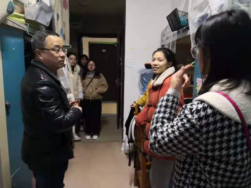 此次走访过程中,着重查看了毕业班、分流班级和更换辅导员班级的同学情况,院领导、辅导员与同学们进行了亲切交流。崔军副书记关心同学们的生活状况,叮嘱同学们注意用电安全、财产安全。同时及时联系宿管、后勤反映寝室设施的问题,后勤部门也表示会及时上门维修,保证员工们的正常生活。
