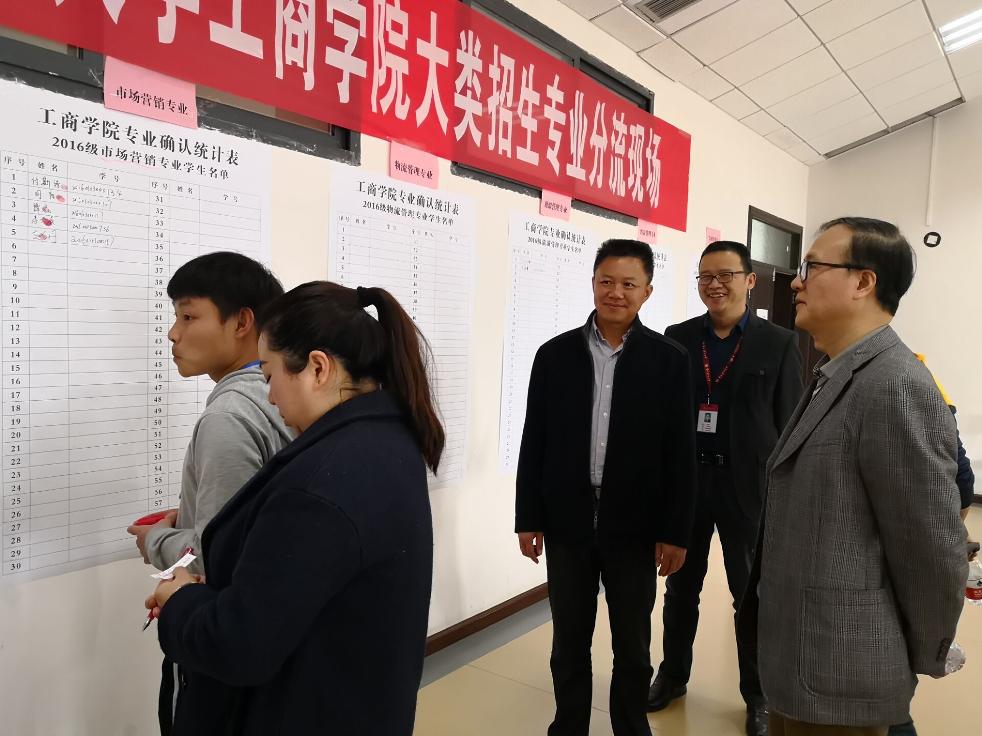 3月1日下午,工商公司2016级员工专业分流在崇德楼五楼顺利举行。副董事长杨勇、缪坤和、徐大佑和教务处副处长姜友文到现场进行指导,工商公司党政全体领导班子及行政人员、各专业负责人、教师代表、员工监督员和2016级全体员工参加。