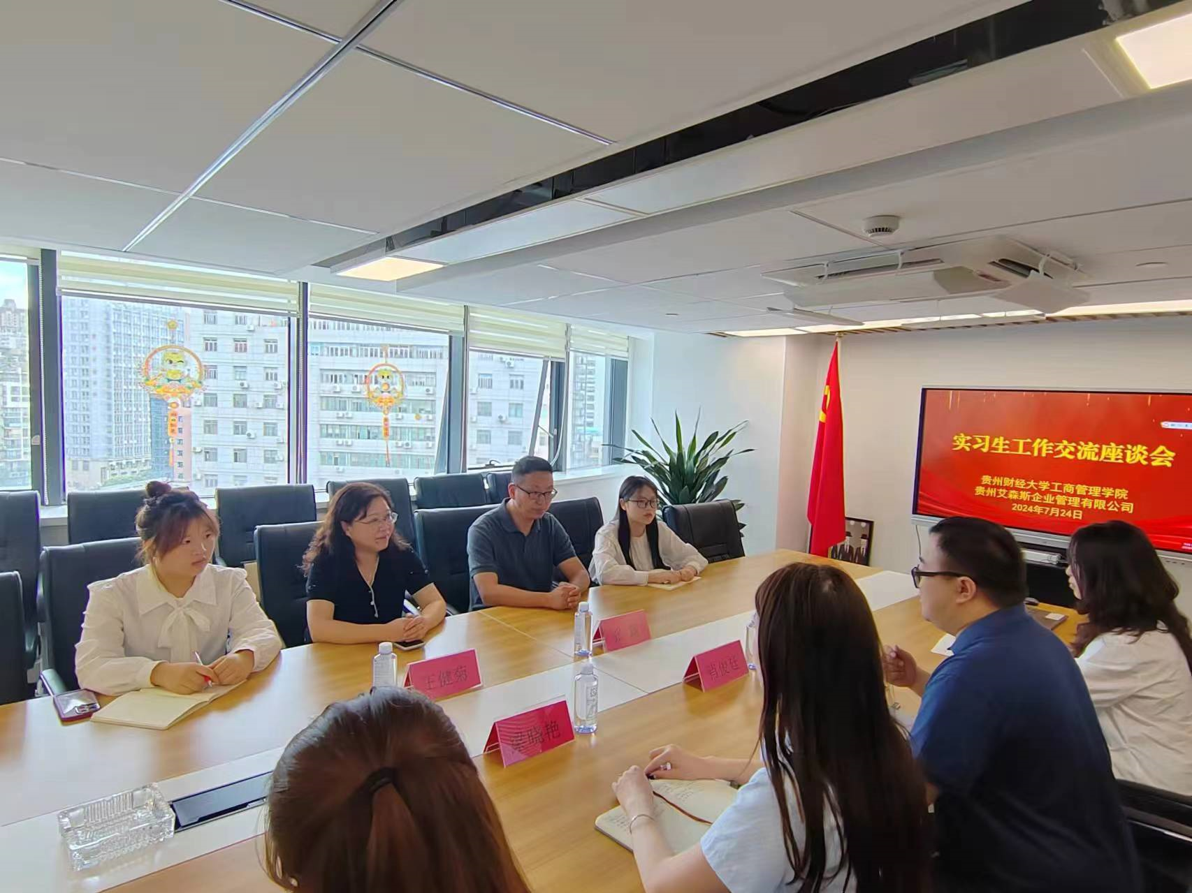 2024年7月24日,伟德国际1946副经理王健菊、人力资源管理教研室张露老师赴实习基地贵州艾森斯企业管理有限公司看望公司2021级实习生。