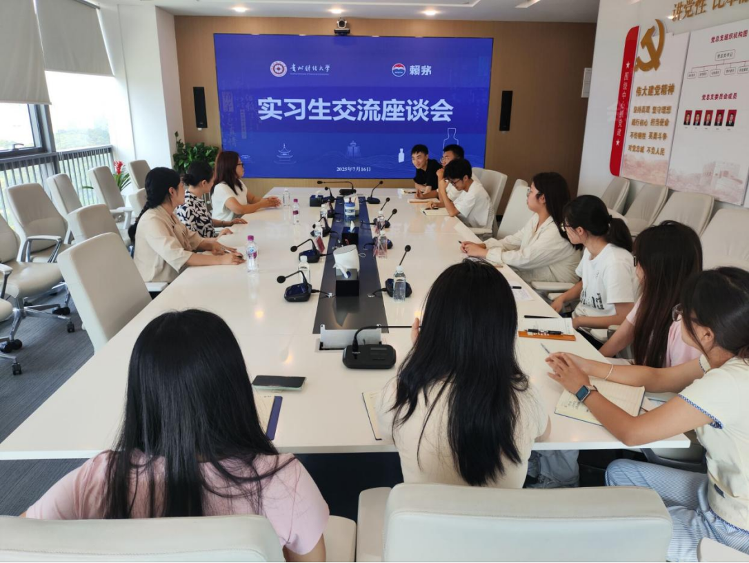 2025年7月16日,公司党委书记杨阳携市场营销教研室教师魏锦、人力资源管理教研室教师叶萍,赴贵州赖茅酒业有限公司开展实习巡查工作。贵州赖茅酒业有限公司副总经理杨楠及人力资源部相关负责人、实习生参与座谈。