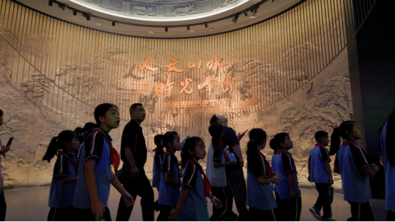 在贵州省博物馆,同学们驻足于夜郎国青铜器、苗族百鸟衣、侗族鼓楼微缩景观前,聆听侗族大歌,通过数字化导览系统追溯黔地千年文明脉络。在贵州省青少年图书馆,大家,津津有味地翻阅立体绘本,体验交互式的数字阅读,近距离触摸家乡的历史文化。